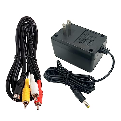 CUENSTOP Power Supply and AV Cable for Genesis 2 3, AC Power Adapter and Audio Video RCA AV Cable Compatible with SEGA Genesis 2 3 Console