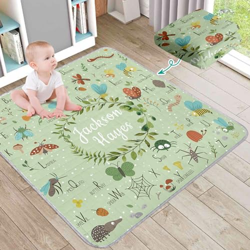 Duckbe Custom Play Mat for Baby Toddler Girls, Non Slip Crawling Padded Mat for Floor Tummy Time, Portable Foldable Infant Rug, Pink Elephant Nursery Bedding Set Shower Gift(47″x 59″)